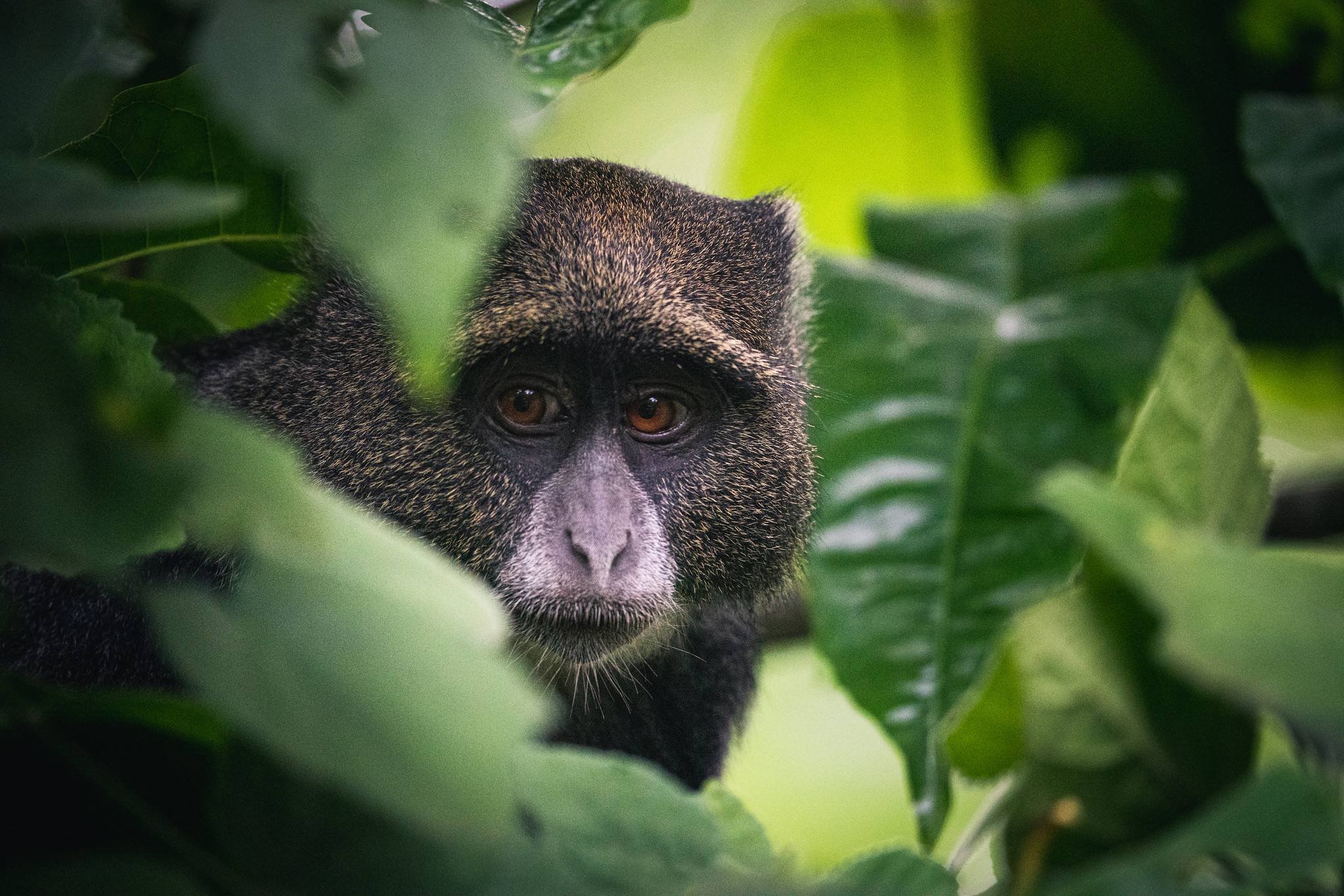 - Lush montane forest with monkeys and fig trees